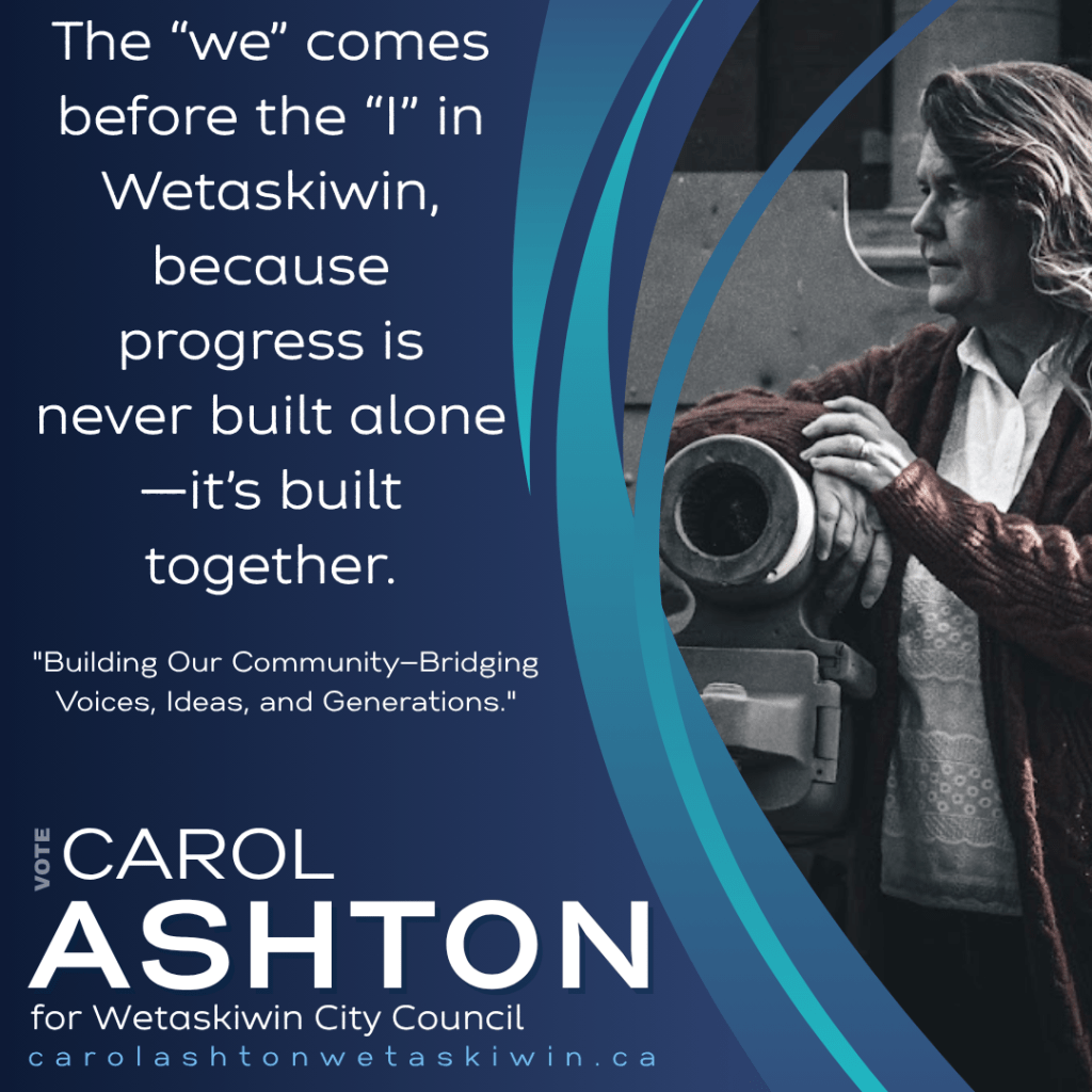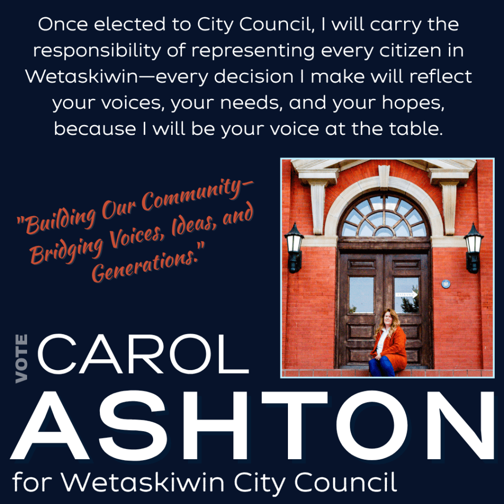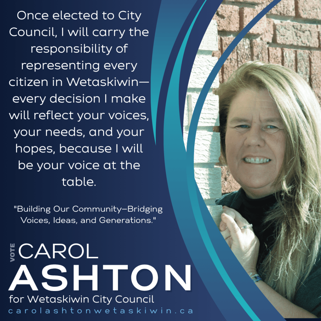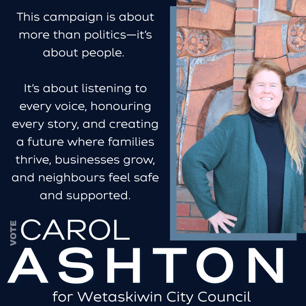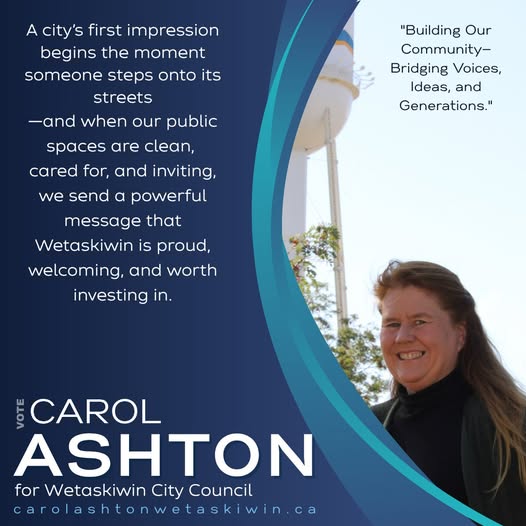 Your voice matters—make it heard on October 20! Let’s shape the future of Wetaskiwin together. Learn more about my vision and priorities at https://carolashtonwetaskiwin.ca/ and be part of the change by casting your vote.